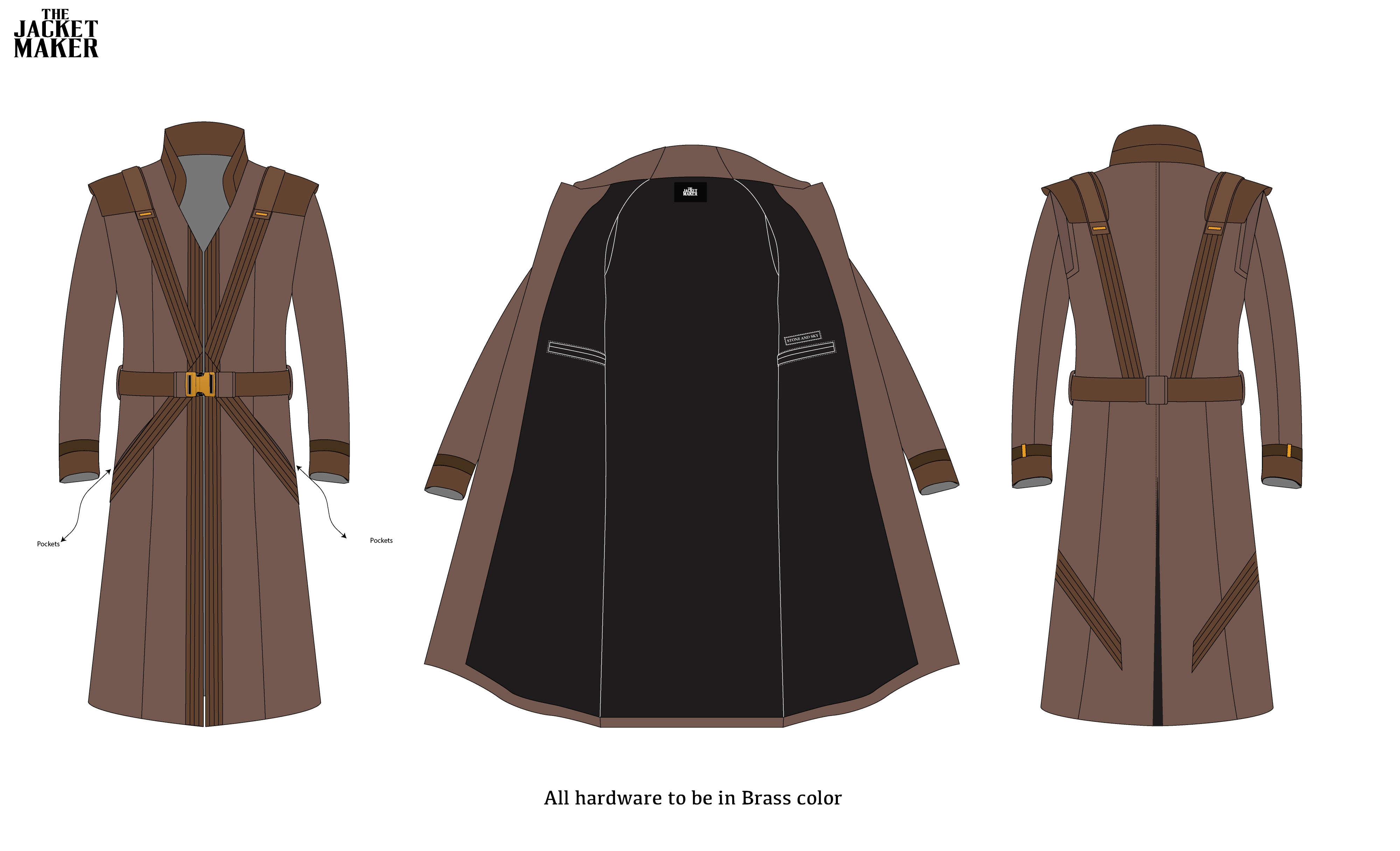 - Decorative brass studs on the upper right chest & left chest on the front torso, and on the upper back (as per mock & references)