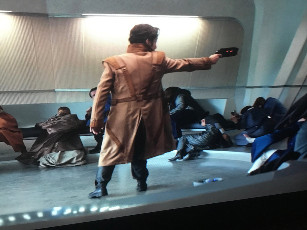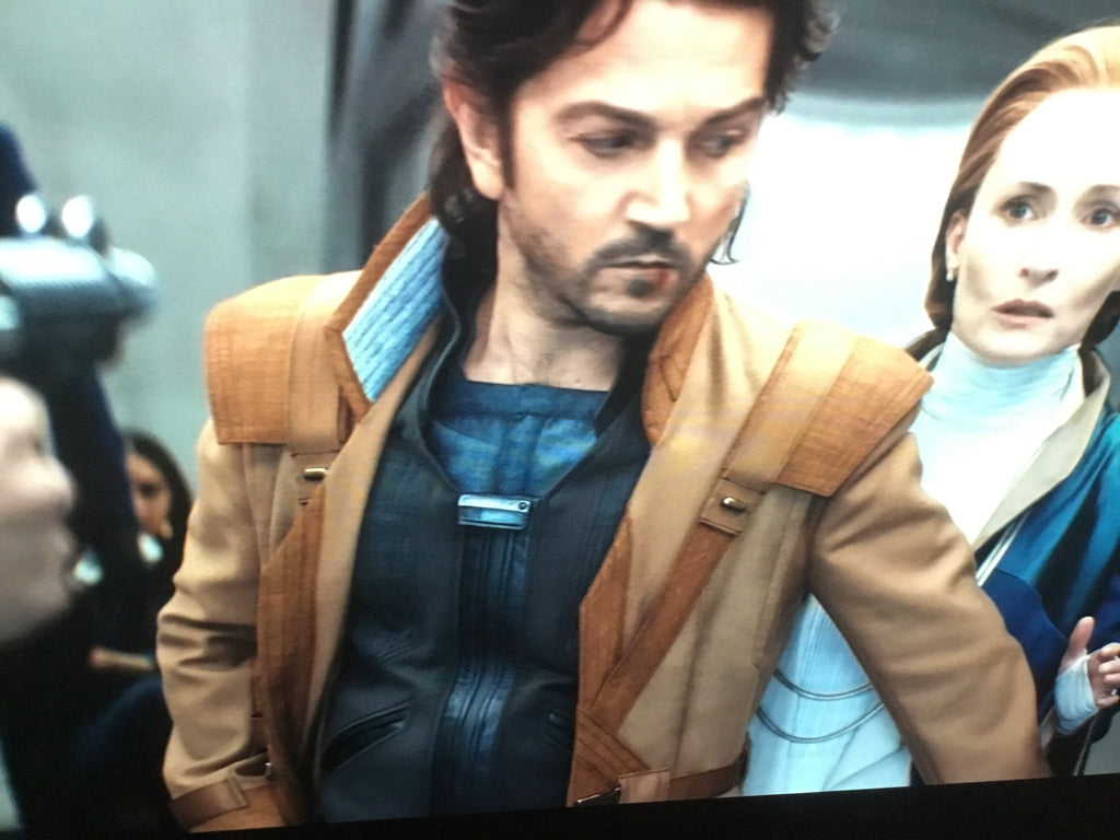 - Brown suede piping across the front torso in cross shape, and back torso (as per mock & references)